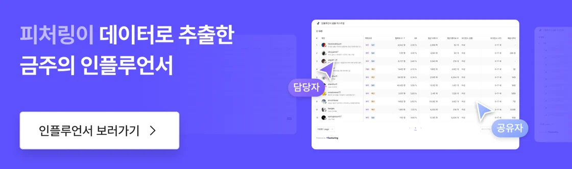 피처링이 데이터로 선별한 라이징 인플루언서들의 계정을 기반으로