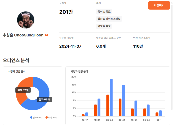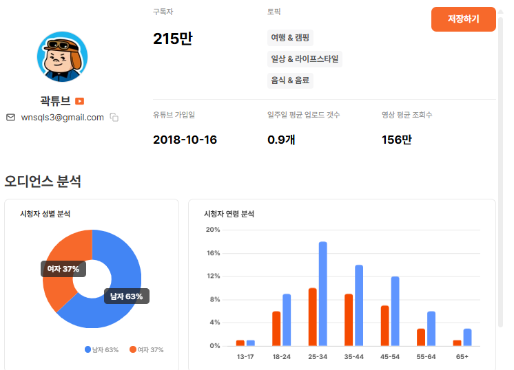 구독자 수는 많은데 실제 시청층이 다르면 효율은 바로 흔들립니다. 특히 브랜드가 명확한 타겟 연령을 가지고 있다면, 조회수보다 더 중요한 건 누가 보고 있느냐죠.