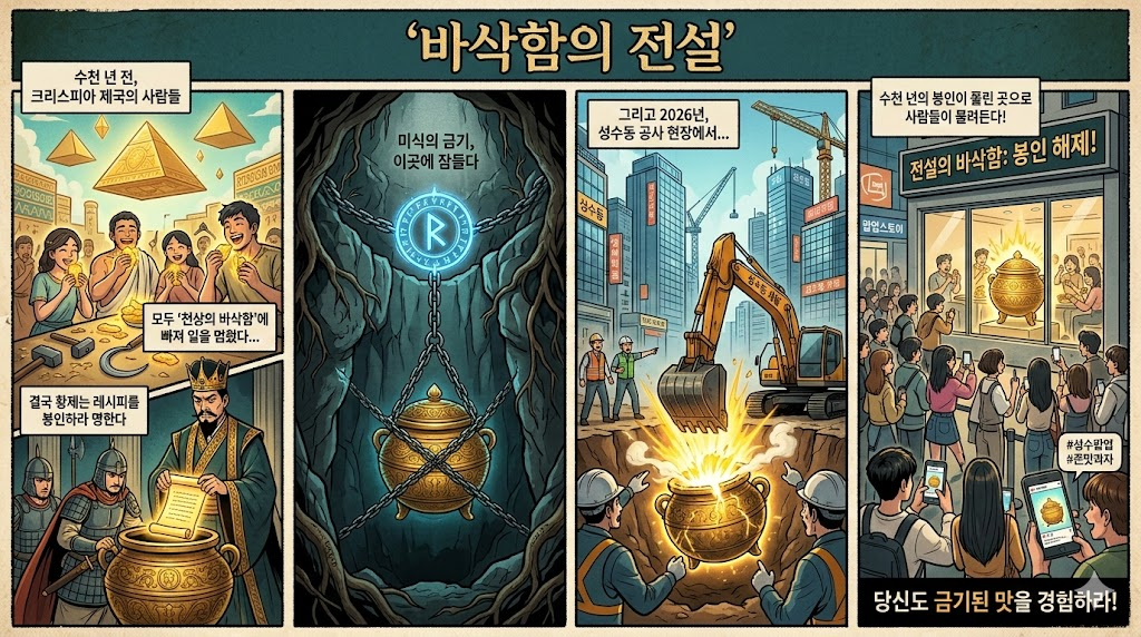 예를 들어, F&B 브랜드가 신상 과자를 출시했다고 가정해 볼게요. 단순히 "새로운 맛이 나왔어요"라고 홍보하는 것과, "수천 년 전 고대 제국에서 봉인된 '천상의 바삭함' 레시피가 2026년 성수동 공사 현장에서 황금빛 연기와 함께 발견됐다"는 세계관을 던지는 것 중 어느 쪽이 더 궁금할까요? 당연히 후자겠죠!