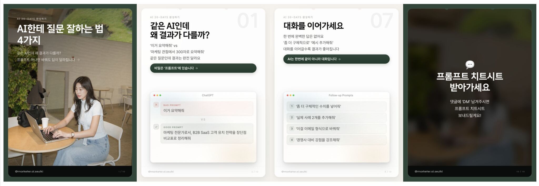 저는 이제 프롬프트 하나만으로 고퀄리티의 상세페이지와 인스타그램 카드뉴스를 만들 수 있는 자동화 시스템을 얻었습니다.