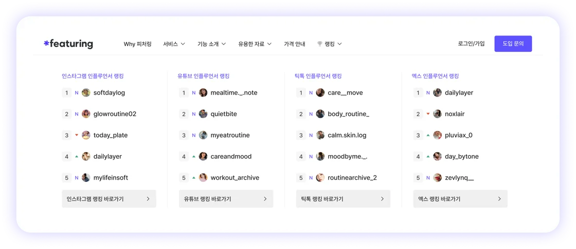 '피처링 인플루언서 랭킹' 기능 또한 잘 활용하고 계시는데요.
