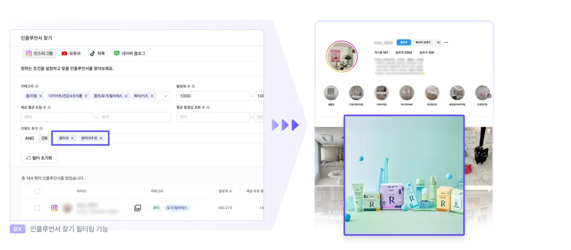 기존에는 2030 여성 타깃 인플루언서를 찾기 위해