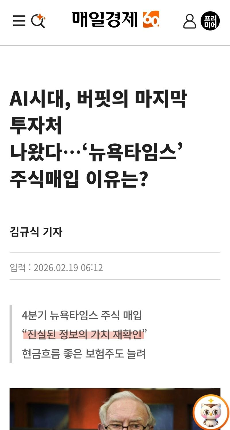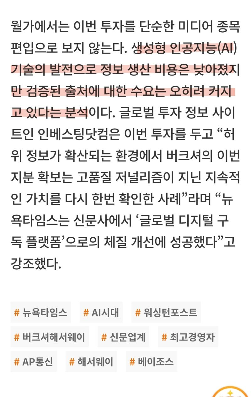 뉴욕타임스(NYT) 지분을 확보했다고 합니다.
