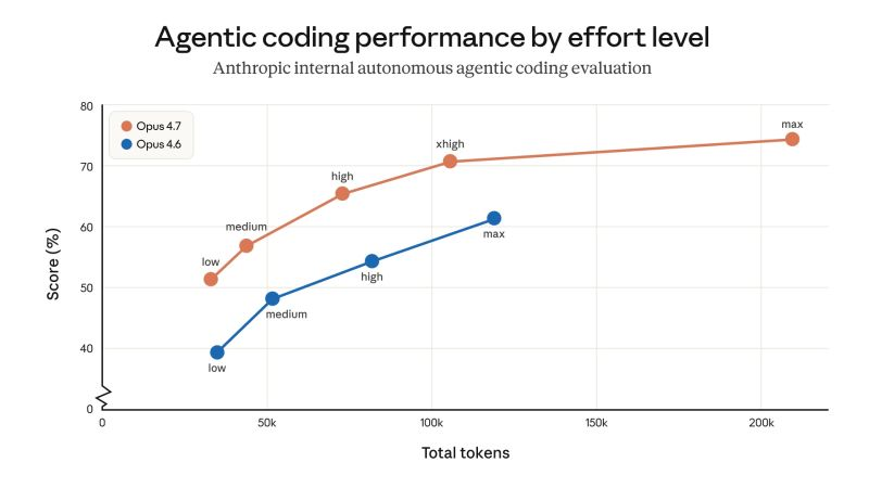 4.7에는 high와 max 사이에 xhigh라는 새 단계가 생겼고, 이게 기본값이 됐다고 합니다. 대부분의 코딩 작업에 xhigh를 권장합니다. max는 쉬운 문제에도 과하게 고민해서 토큰을 낭비하는 경향이 있는데, xhigh는 토큰 사용이 폭주하지 않으면서 판단력이 필요한 작업에 잘 맞는다네요.