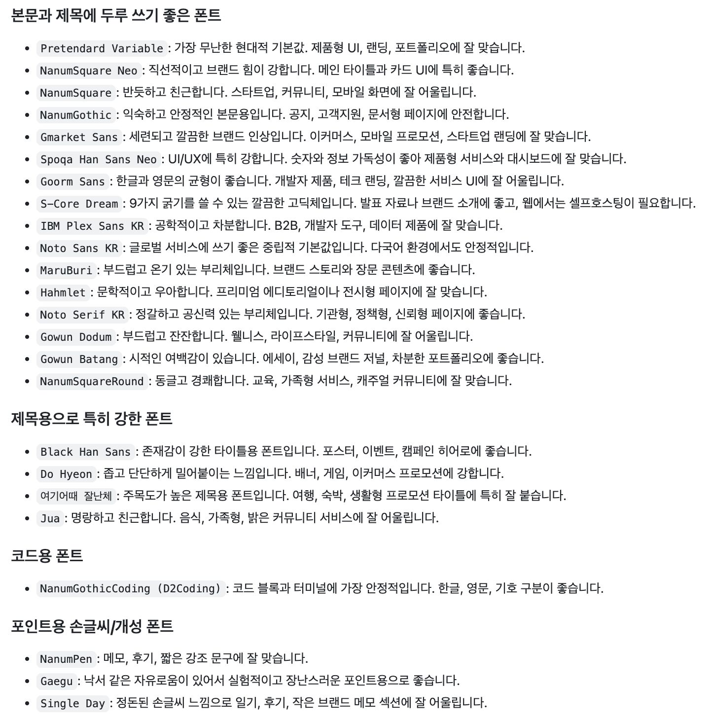 - PPT, 카드뉴스 등 주제에 맞는 웹폰트를 적용해주는 Korean-vibe-fonts