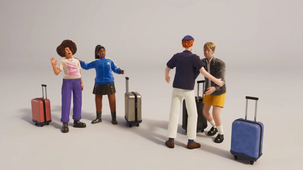 친구들을 만날 수 있습니다. 캐리어를 끌고 온 걸 보니 다같이 여행을 왔나 봐요! 반갑게 서로를 껴안고 인사를 나눕니다.