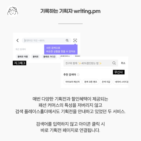 검색 플레이스홀더에서도 기획전을 안내하고 있었던 두 서비스, 지그재그와 무신사.