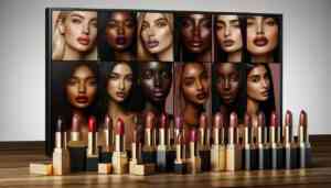 다양한 피부톤에 맞춘 컬러 옵션을 적용한 립스틱 광고 이미지