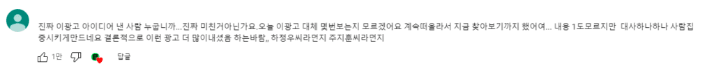 광고의 완성도 뿐만 아니라 작품에 주목하는 댓글 반응 또한 아주 많은데요,