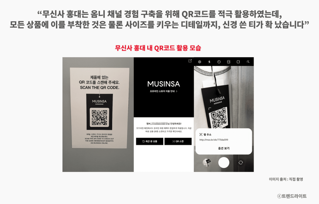 무신사 홍대처럼 QR코드를 이렇게까지나 활용한 사례는 찾아보기 어렵습니다