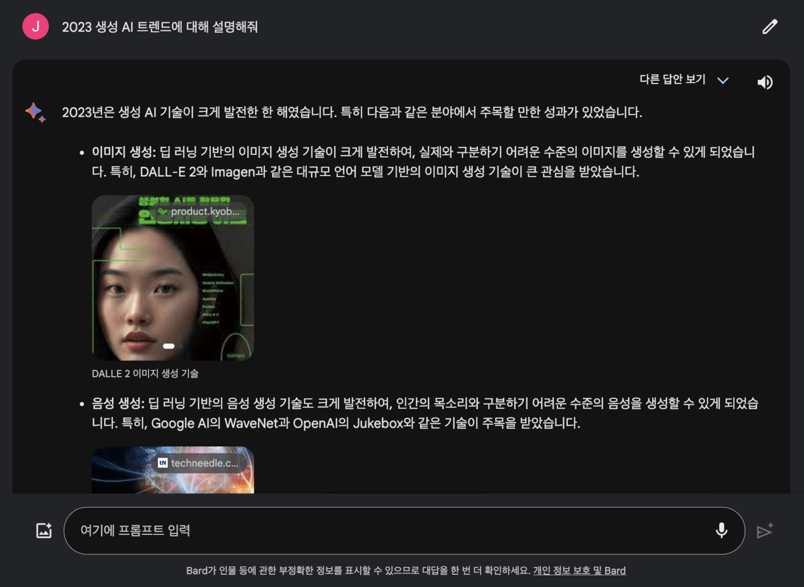 가장 큰 유명세를 탄 오픈AI의 ChatGPT 이외에도 구글의 Bard, MS의 Bing, 네이버의 하이퍼클로바X 등 글로벌 IT 기업들은 다양한 분야에서 생성 AI 기술을 강화해 왔어요.