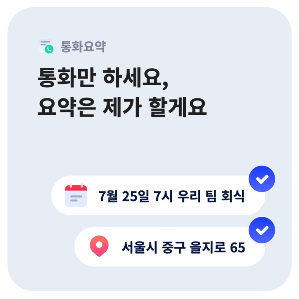 SKT는 녹음된 통화 기록을 기반으로 내용을 요약하고, 일정 예약 혹은 연락처 저장 등을 제안하는 ‘에이닷’ 서비스를 공개했어요.