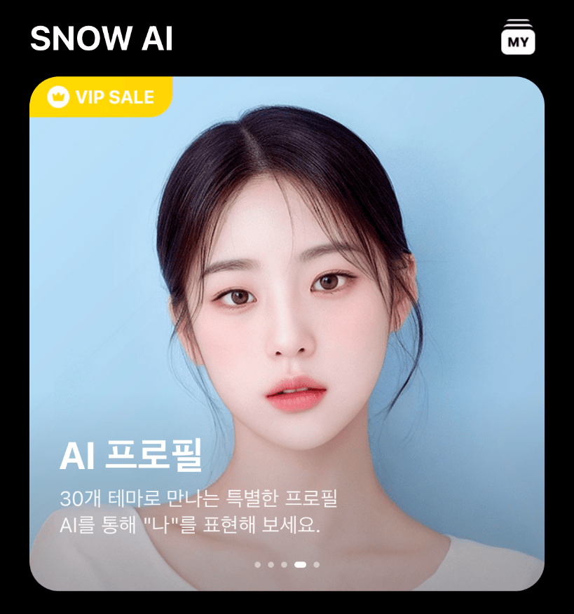 모바일 사진 앱 SNOW는 얼굴 사진 10~20장을 AI로 분석해 프로필 사진을 만들어주는 유료 서비스를 제공해 한 때 MZ세대 사이에서 큰 인기를 끌기도 했죠.