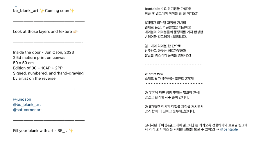 출처 : 비이블랭크(@be_blank_art), 반테이블(@bantable)