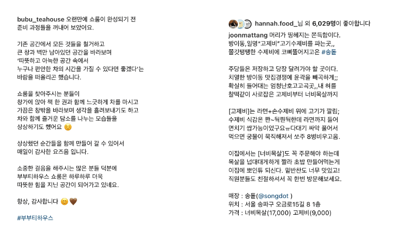 출처 : 부부티하우스(@bubu_teahouse), 준맛탱(@joonmattang)