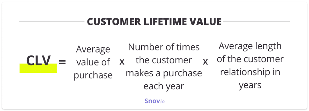 – 1명의 고객 유치를 단위의 기준으로 가져가는 경우, 한 가지 개념이 추가됩니다. 바로 고객 평생 가치(CLV)입니다. 고객 평생 가치는 고객이 기업에 지불하는 총비용을 의미합니다.