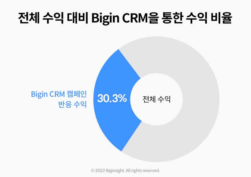 ・ 전체 수익 중 Bigin 캠페인에 반응한 후 구매한 금액의 비율 30.32%