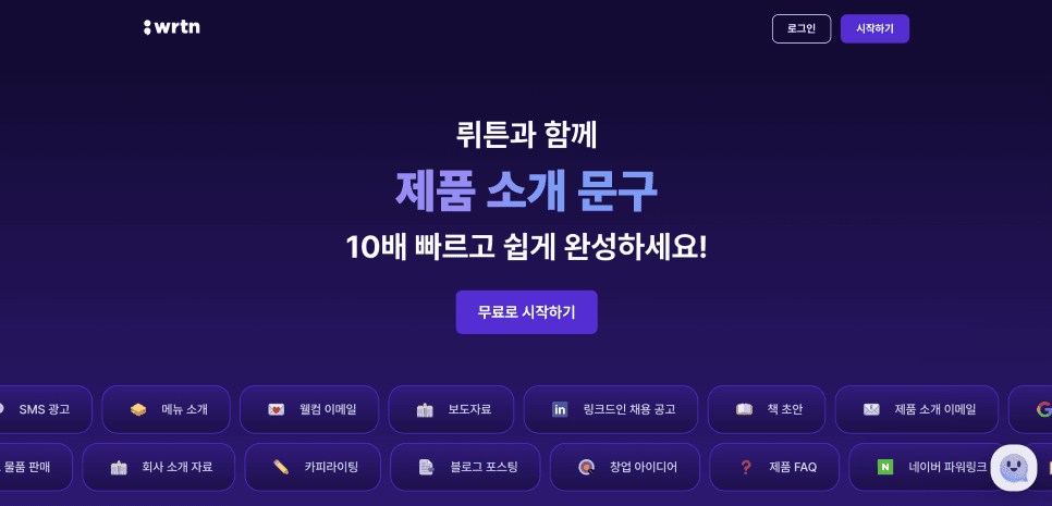 두번째로 뤼튼(wrtn)은 초거대 생성 AI(Generative AI) 기반의 국내 콘텐츠 생성 플랫폼이에요. 챗GPT와 마찬가지로 키워드를 입력하여 원하는 상황에 대한 문장을 자유롭게 생성할 수 있는데요. 마케터 뿐 아니라 콘텐츠 크리에이터, 이커머스 사장님 등 글쓰기에 어려움을 겪는 사람들이라면 누구나 도움을 받을 수 있어요.