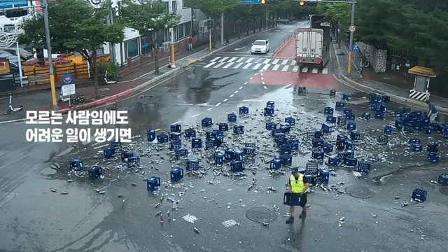 특히 어질러진 도로를 주위 시민들이 달려와 비를 맞으며 함께 정리하는 모습이 담겨 더욱 관심을 받았습니다.