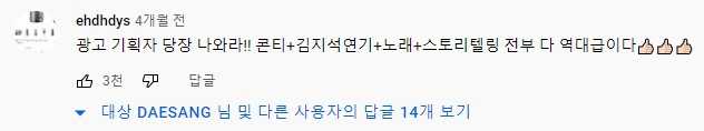광고 영상으로는 흔치 않게 댓글 반응 또한 폭발적이었는데요,
