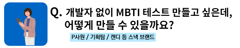 오늘은 개발자 없이, 코딩 없이 MBTI 테스트를 만드는 방법에 대해 소개해 드릴게요.